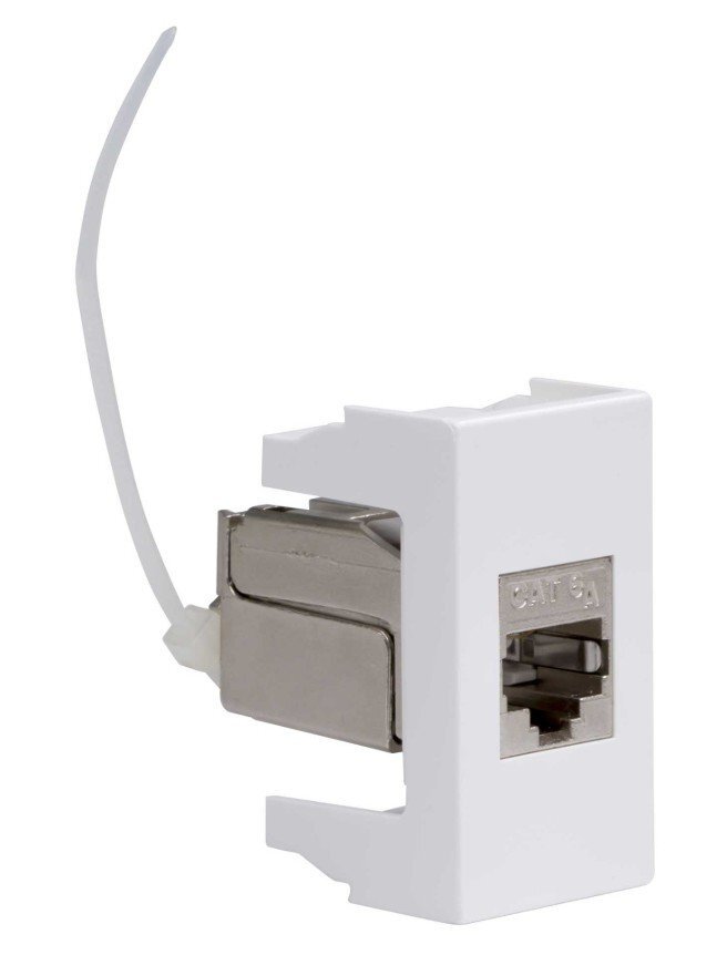 Компьютерная розетка. Назначение: подсоединение кабеля к компьютеру, принтеру и прочей оргтехнике. Характеристики: 8Р8С; комплектуются одномодульным гнездом; для заделки контактов в розетки использовать инструмент типа 110. RJ-45. Категория: 6А. Тип гнезда: Keystone. Производитель гнезда: ДКС Hyperline. Установочный размер: 45х25. Кол-во модулей: 1. Цвет: белый