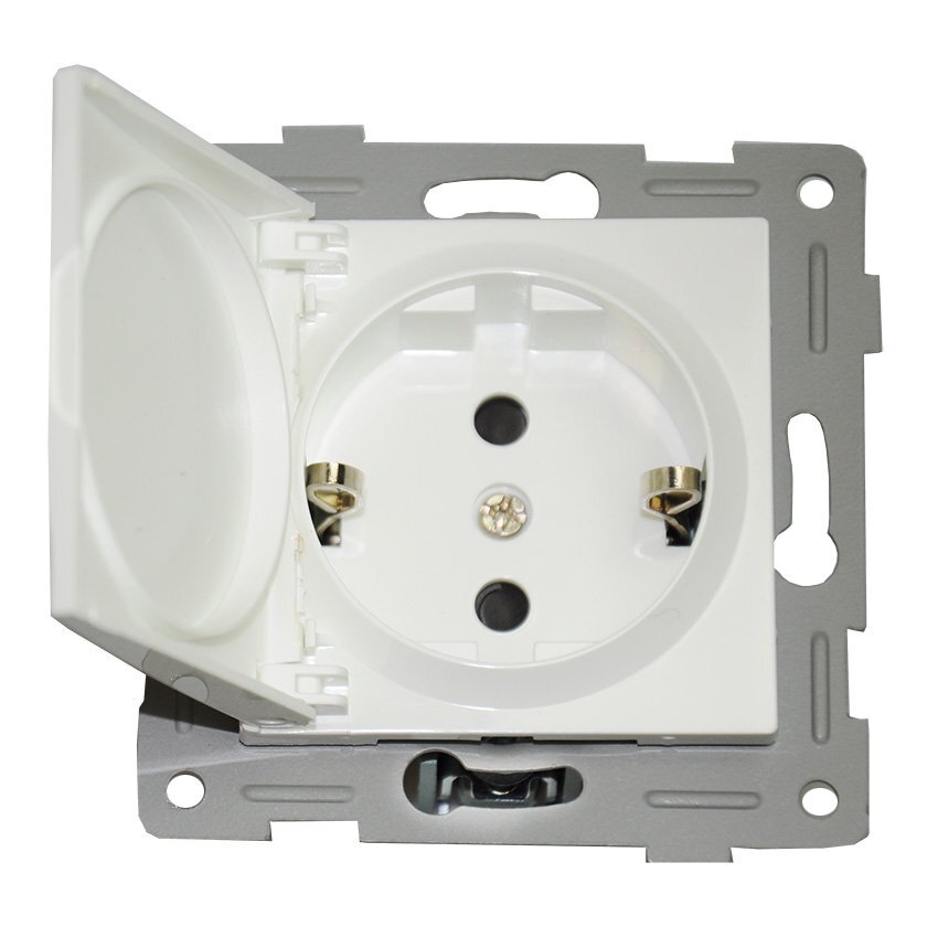 Розетка SPL Розетка электрическая 2К+З, с откидной крышкой, белый (201002)