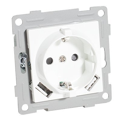 Розетка SPL Розетка электрическая 2К+З/2xUSB A, белый (201004)