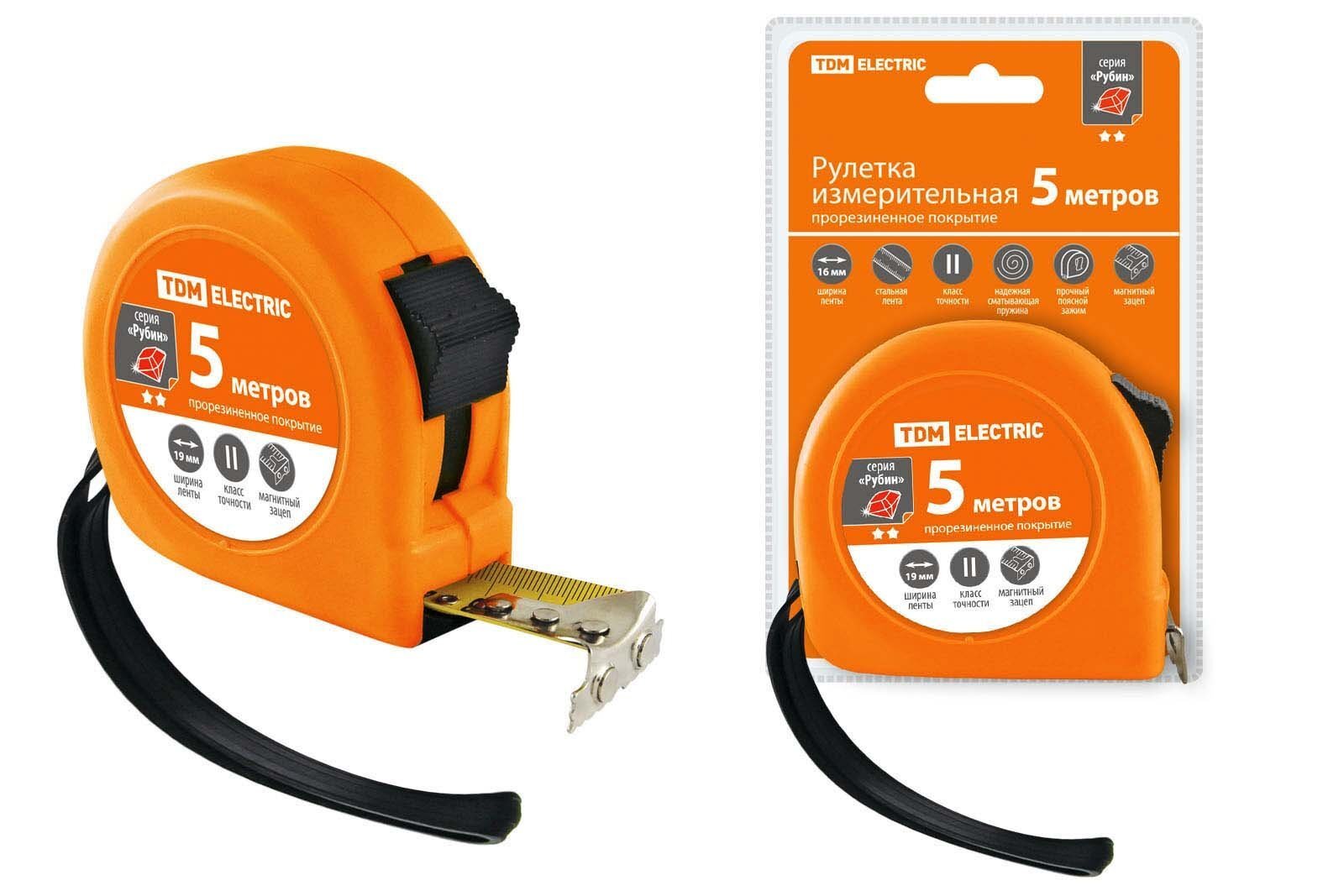 Рулетка TDM ЕLECTRIC Рулетка 5м, стальная лента, ширина 19мм, прорезиненное покрытие, магнит "Рубин" TDM (SQ1018-0106)