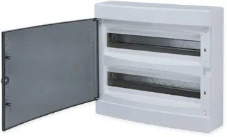 Щит модульный навесной пластиковый, прозрачная матовая дверца; 2 ряда, 36 модулей, U-номин. 400В, I-номин. 63А, IP41, t-раб.-25…+60°C, габ.размеры 361х396х112 мм. Цвет белый. В комплекте DIN-рейка 2 шт., шины 8+4+4+10 N и 26 PE