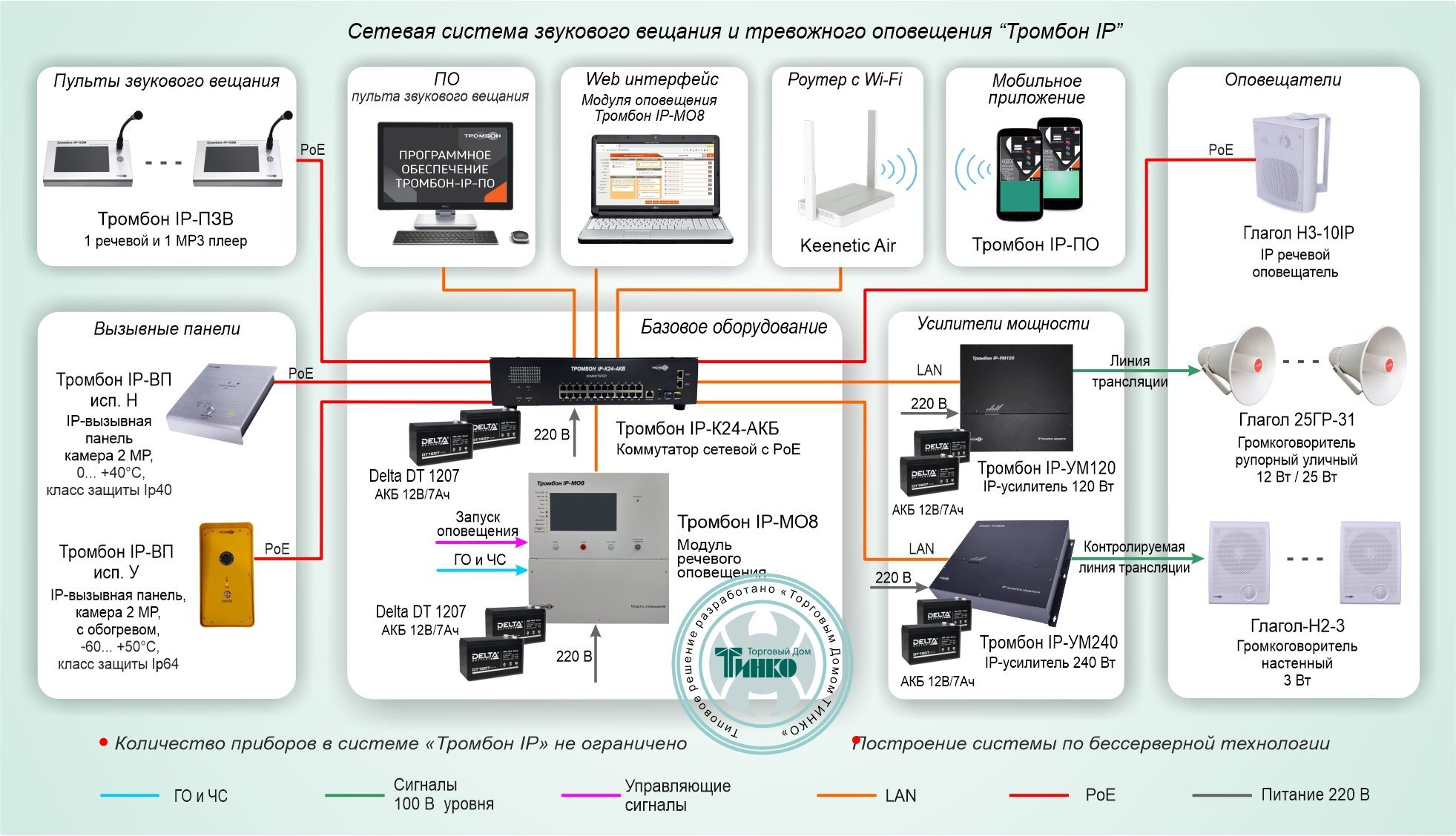Сетевая система звукового вещания и тревожного оповещения “Тромбон IP" ТРОМБОН Типовое решение: СОУЭ-016