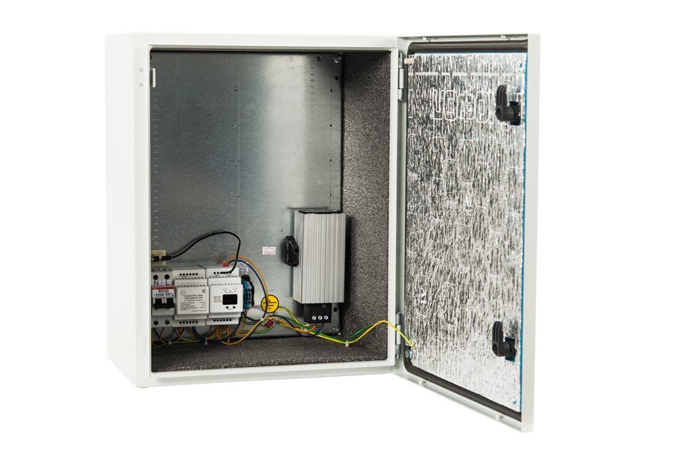 Термошкаф имеет герметичное исполнение и рассчитан на круглосуточный режим работы на открытом воздухе и в помещениях с неблагоприятными условиями эксплуатации (повышенным уровнем влажности, содержания пыли и вредных веществ) при температуре окружающей среды от -65°C до +50°C и относительной влажности до 100% (при 25°C).