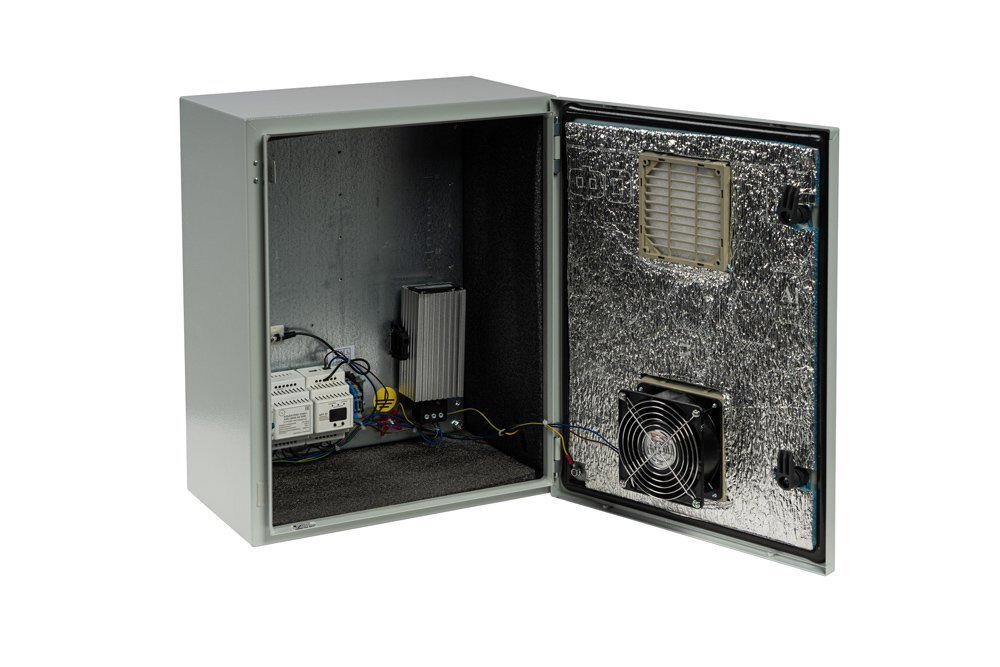 Термошкаф имеет герметичное исполнение и рассчитан на круглосуточный режим работы на открытом воздухе и в помещениях с неблагоприятными условиями эксплуатации (повышенным уровнем влажности, содержания пыли и вредных веществ) при температуре окружающей среды от -65°C до +50°C и относительной влажности до 100% (при 25°C).