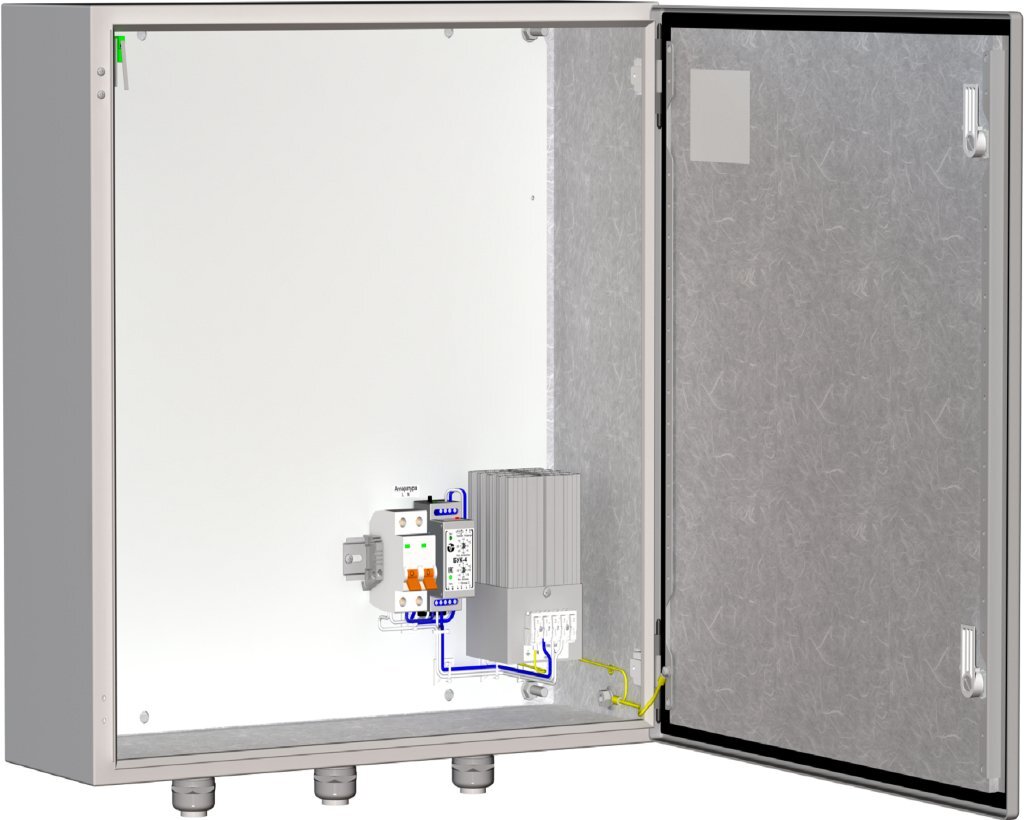 - обогреватель термошкафов ОТШ-100, оборудованный встроенным биметаллическим выключателем, ограничивающим температуру поверхности радиатора до +90°C;