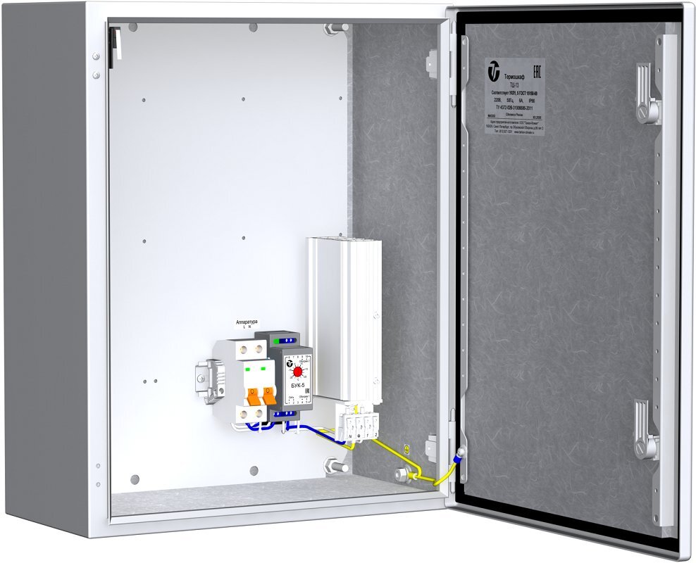 - обогреватель термошкафов ОТШ-60, оборудованный встроенным биметаллическим выключателем, ограничивающим температуру поверхности радиатора до +90°C;