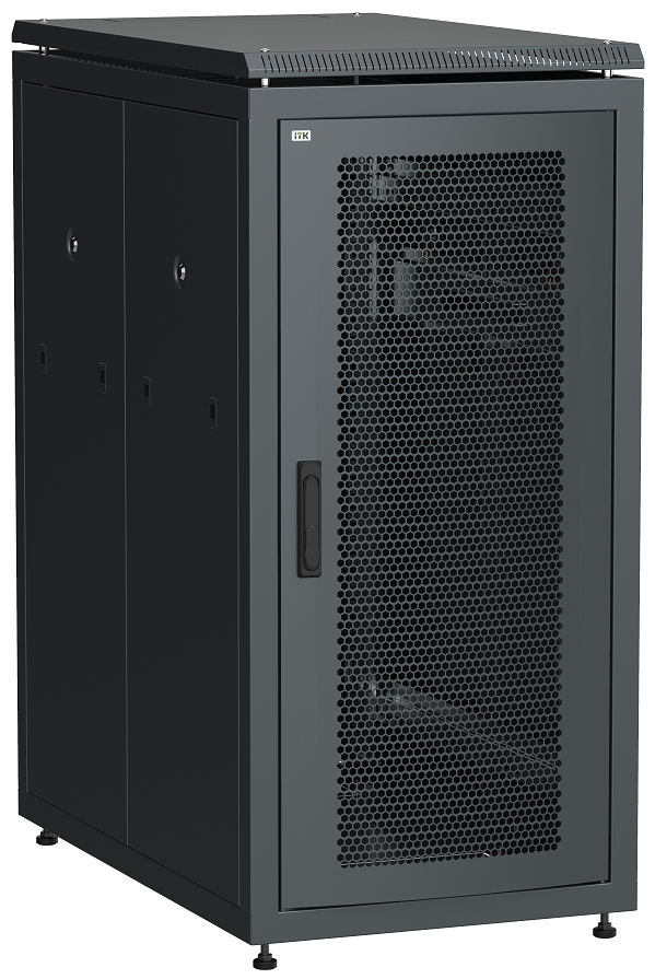 Шкаф телекоммуникационный 19" напольный, передняя дверь перфорированная, задняя дверь перфорированная, 24U, 1200х800х1000 мм (ВхШхГ), полезная глубина 915 мм, ручка с замком, распределенная нагрузка: 1000 кг, цвет чёрный.