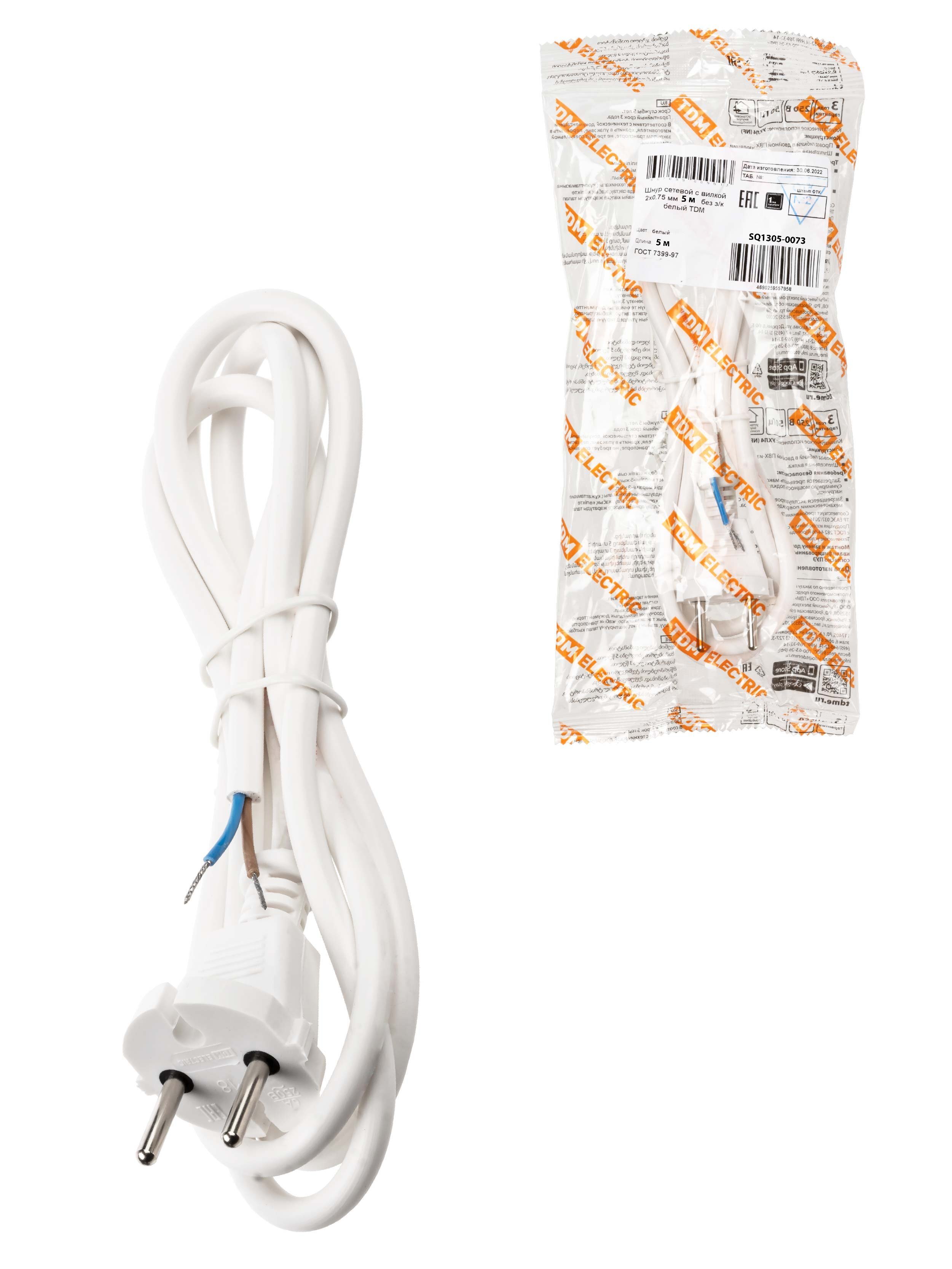 Шнур сетевой с вилкой TDM ЕLECTRIC Шнур сетевой с вилкой ПВС 2x0,75мм2 5м б/з белый TDM (SQ1305-0073)