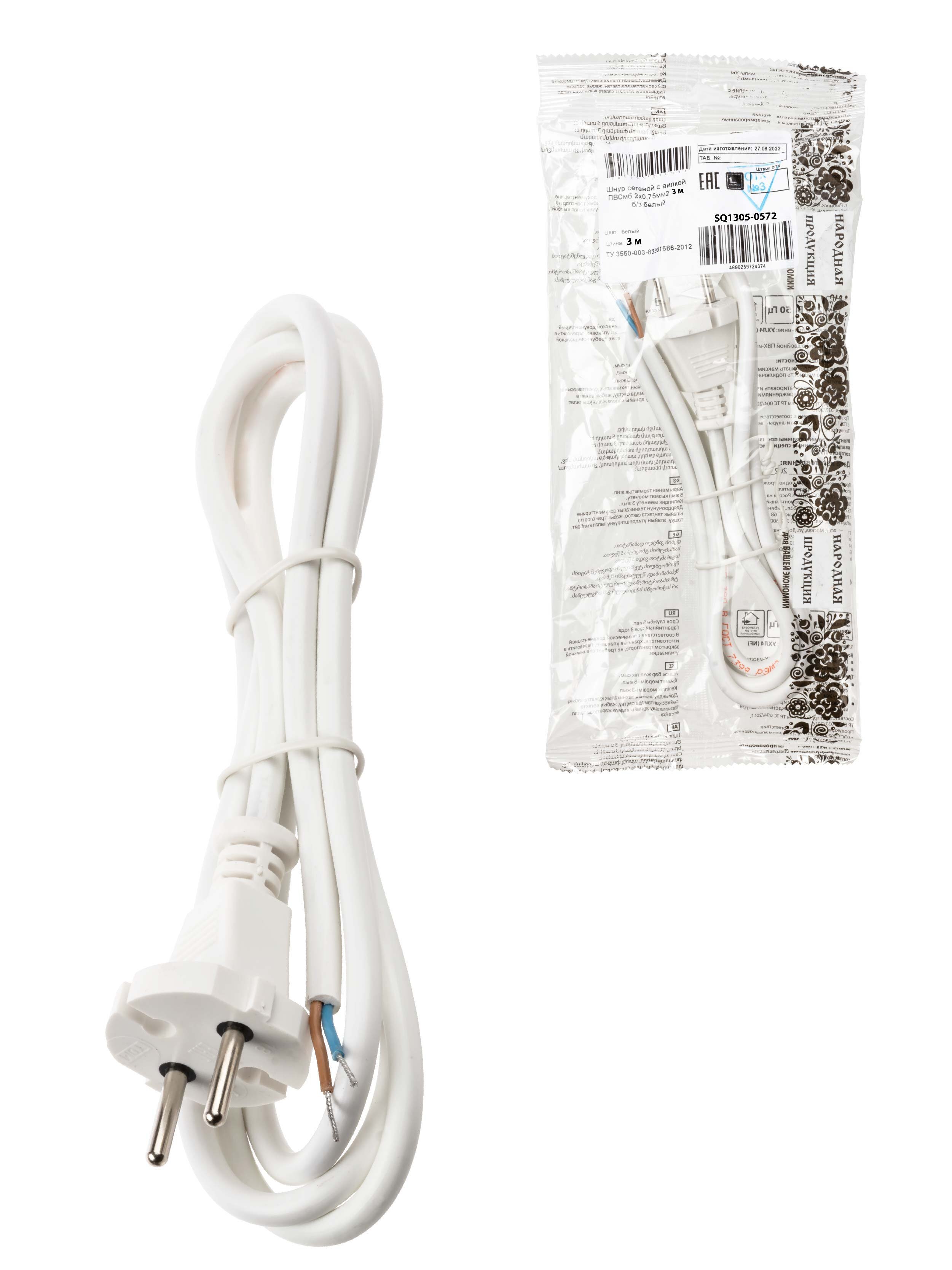 Шнур сетевой с вилкой TDM ЕLECTRIC Шнур сетевой с вилкой ПВСмб 2x0,75мм2 3м б/з белый (SQ1305-0572)