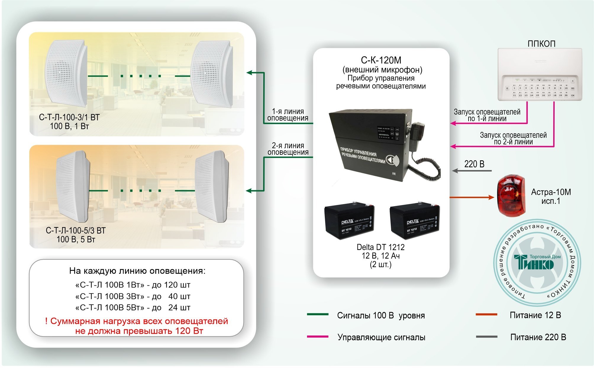 Система автоматического оповещения о пожаре с контролем линий для объектов различной степени сложности ИП Раченков А.В. Типовое решение: СОУЭ-005