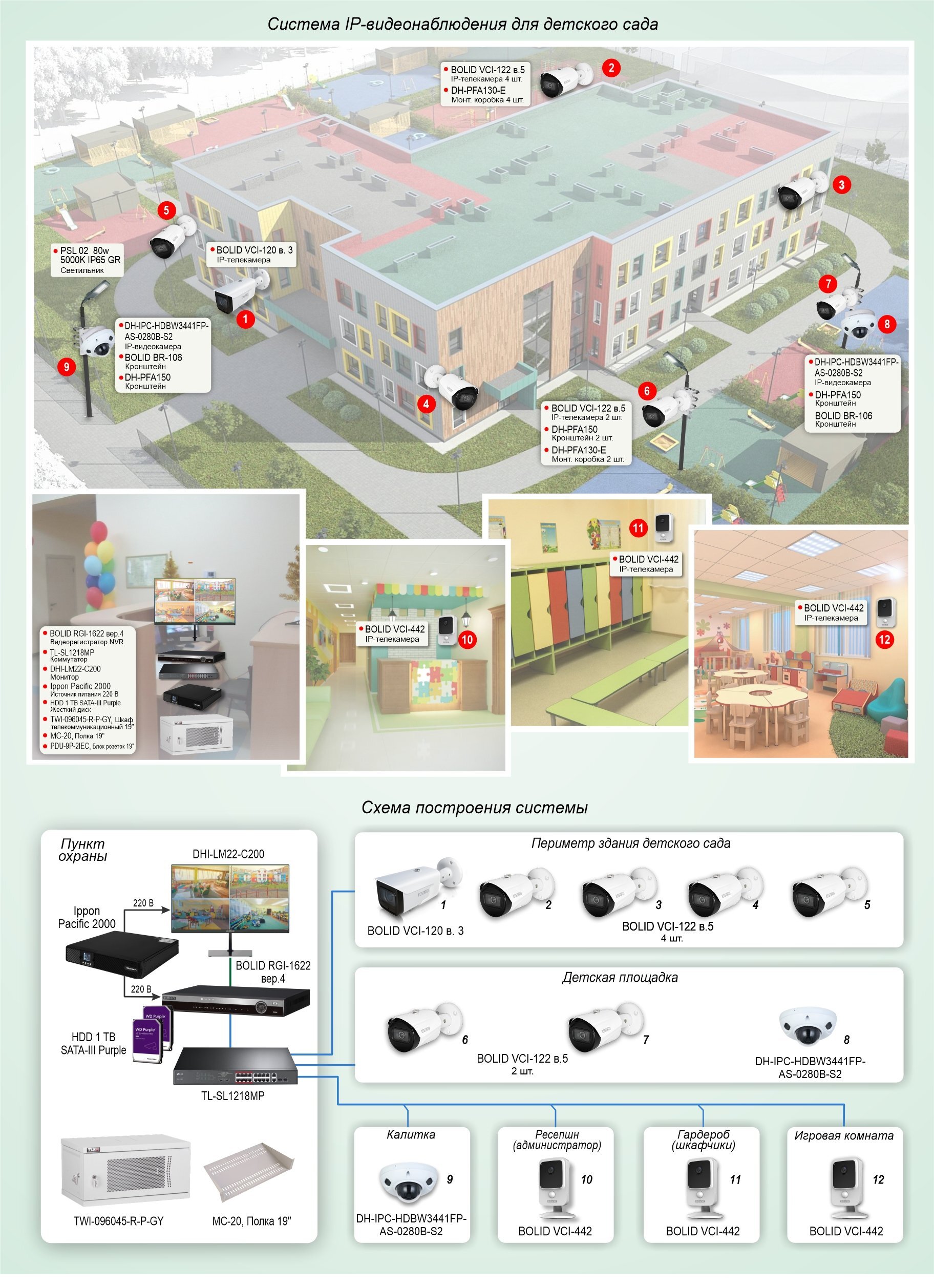 Система IP-видеонаблюдения для детского сада Болид Типовое решение: ТСН-025