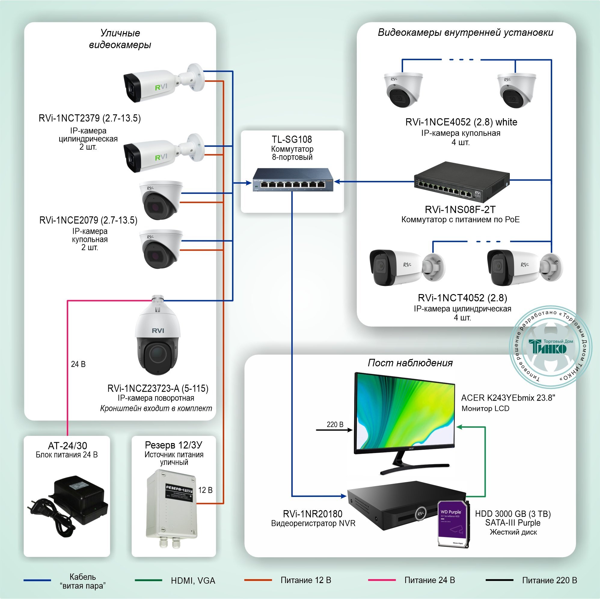 Система круглосуточного видеонаблюдения на базе оборудования RVi RVi Типовое решение: ТСН-007