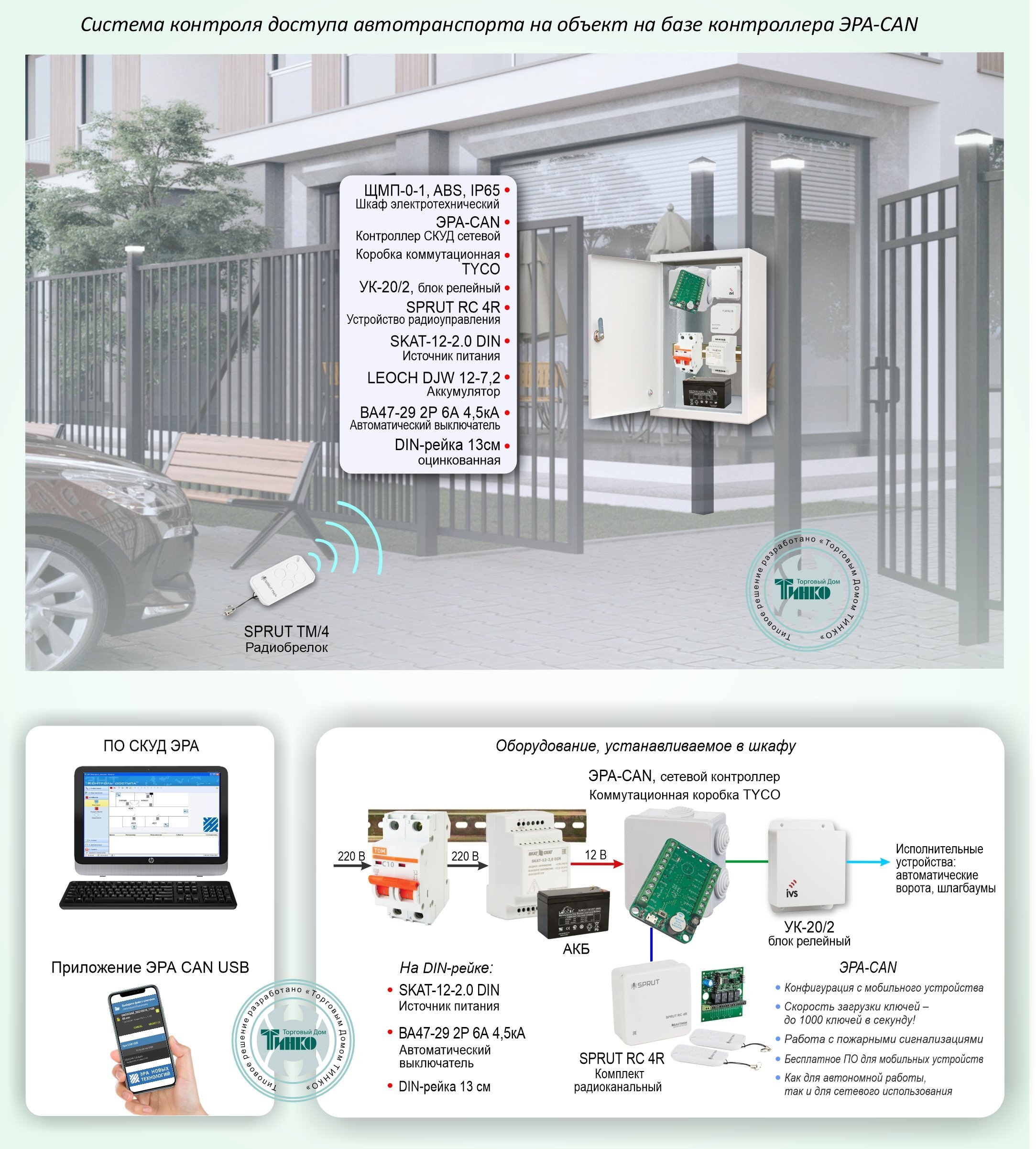 Система ограничения доступа автотранспорта на закрытые и частные объекты на базе контроллера ЭРА-CAN Эра новых технологий Типовое решение: СКУД-022