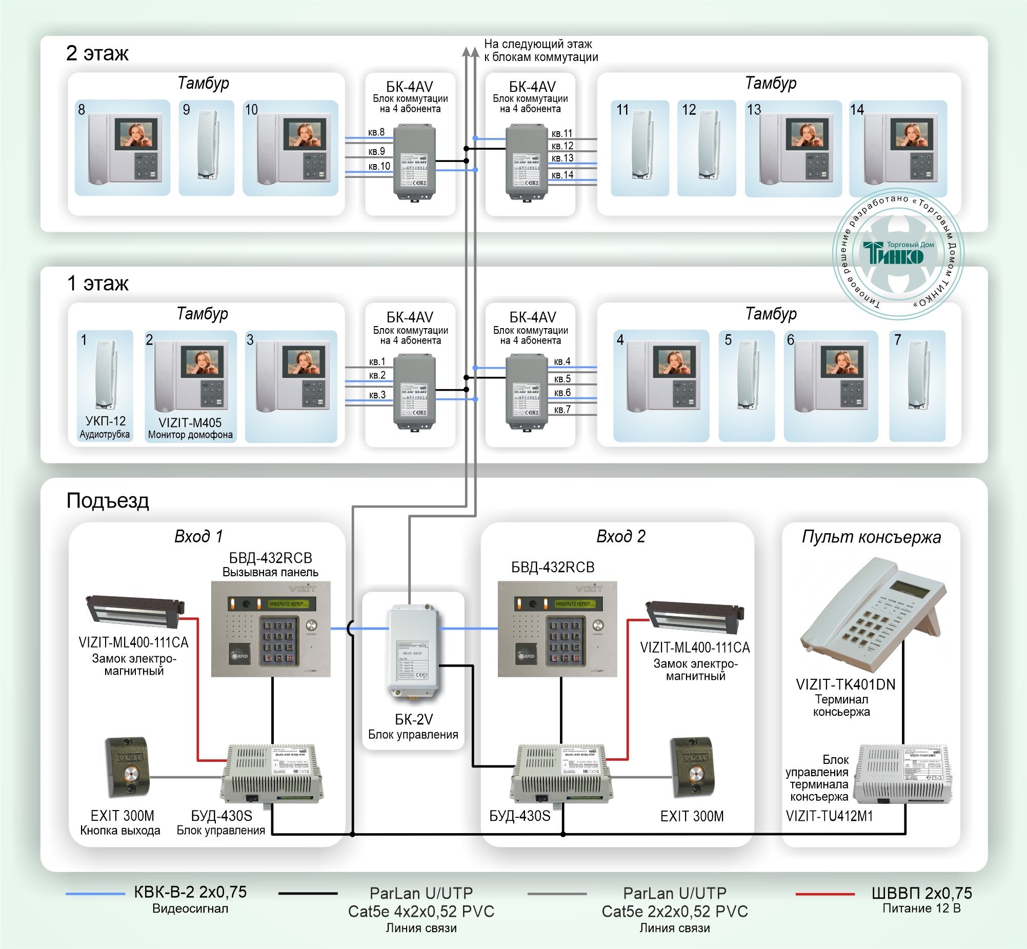 Система ограничения доступа в многоэтажном доме VIZIT Типовое решение: ДМФ-002