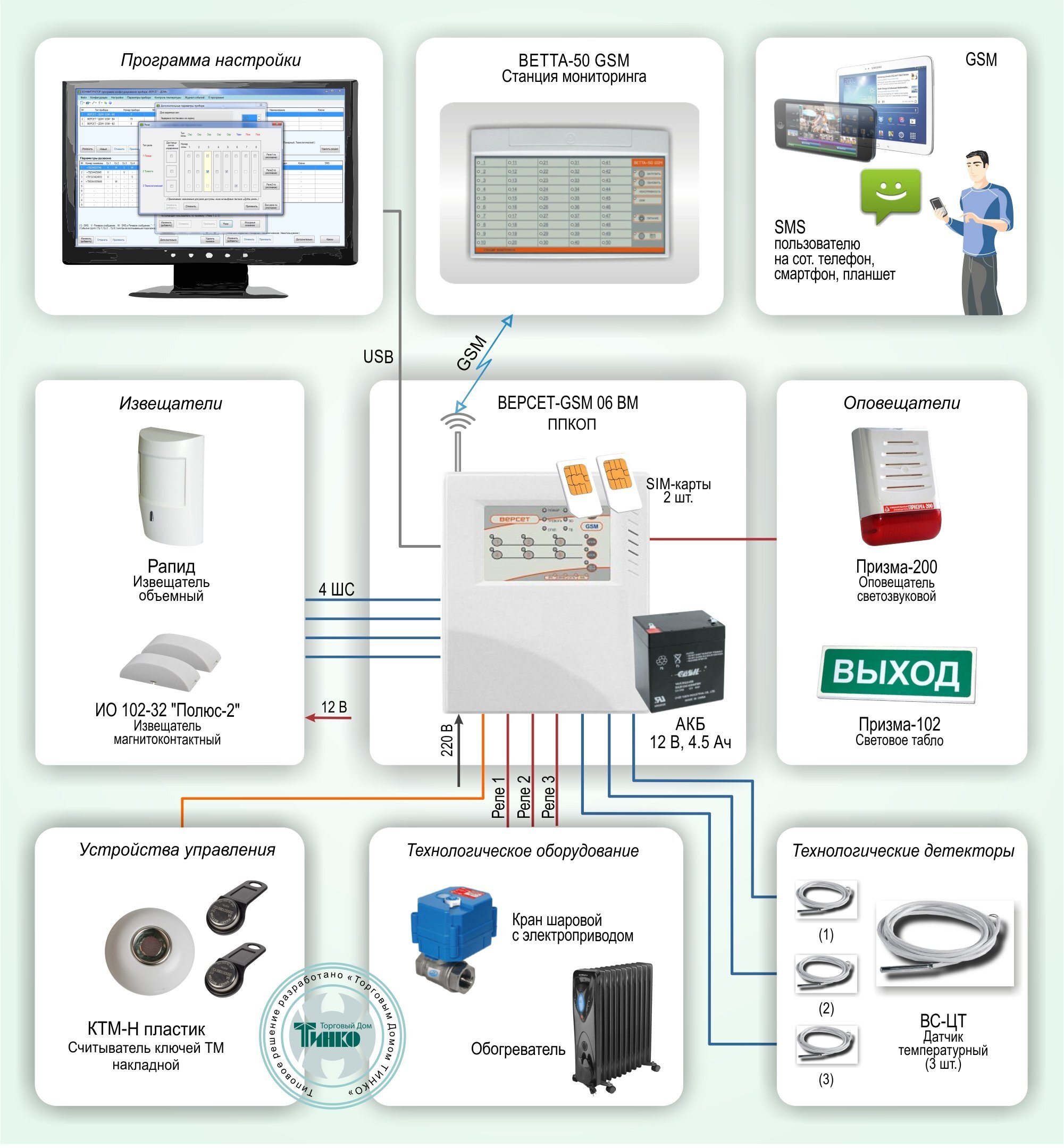 Система охраны, автоматизации, управления и контроля с оповещением по GSM каналу на базе ППКОП «ВЕРСЕТ-GSM 06 ВМ» Версет Типовое решение: ОПС-034