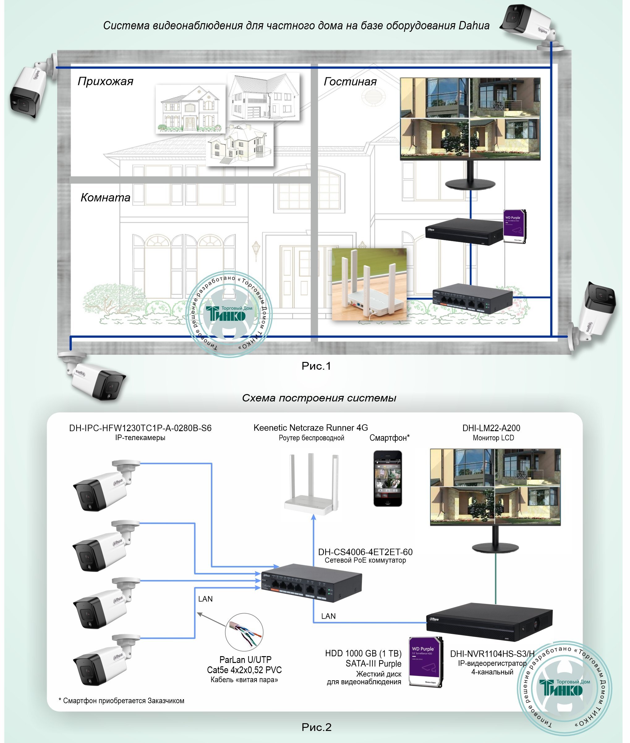Система видеонаблюдения для частного дома на базе оборудования Dahua Dahua Типовое решение: ТСН-009