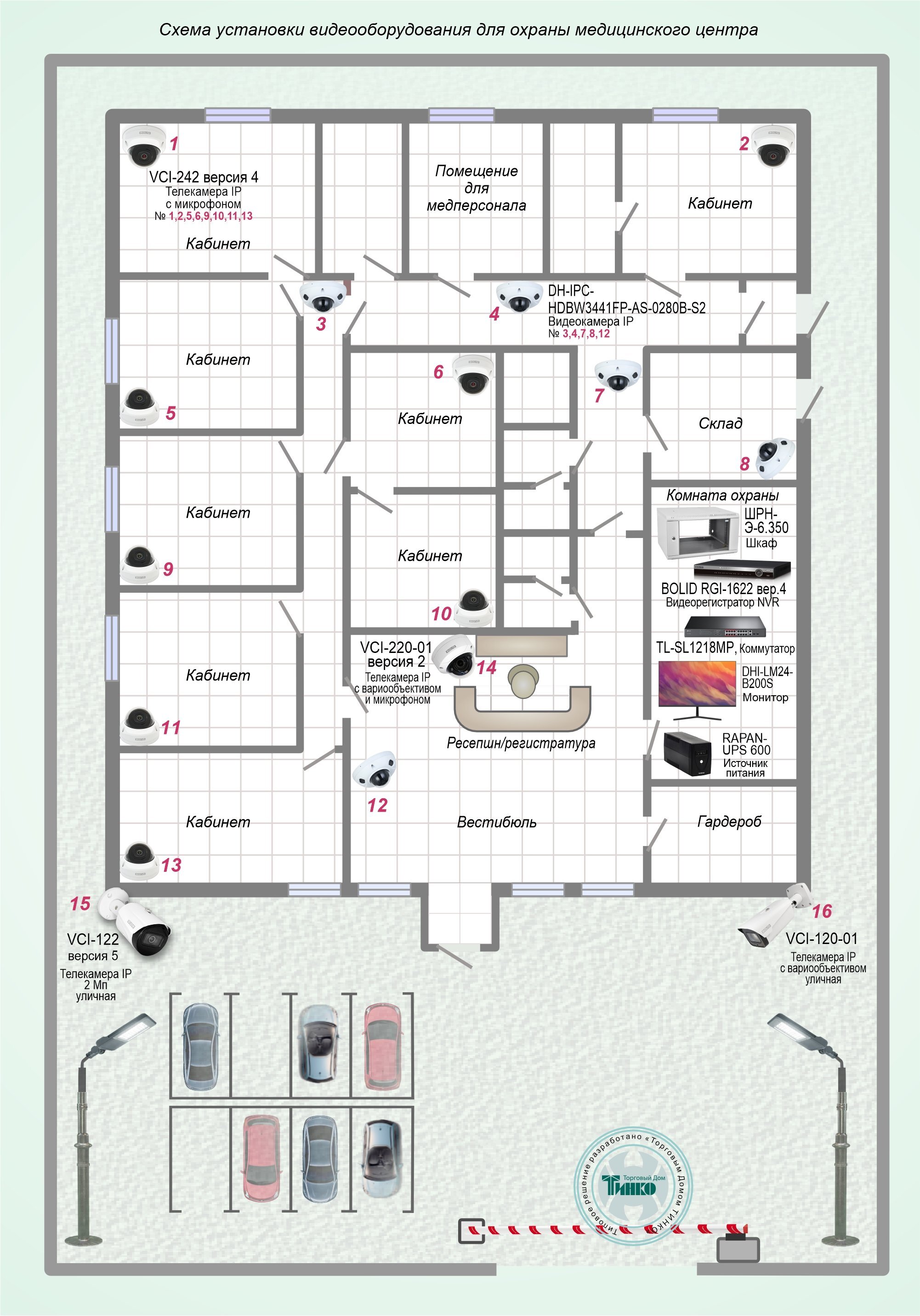 Система видеонаблюдения для медицинского центра с контролем за прилегающей парковкой и въездными воротами Болид Типовое решение: ТСН-021