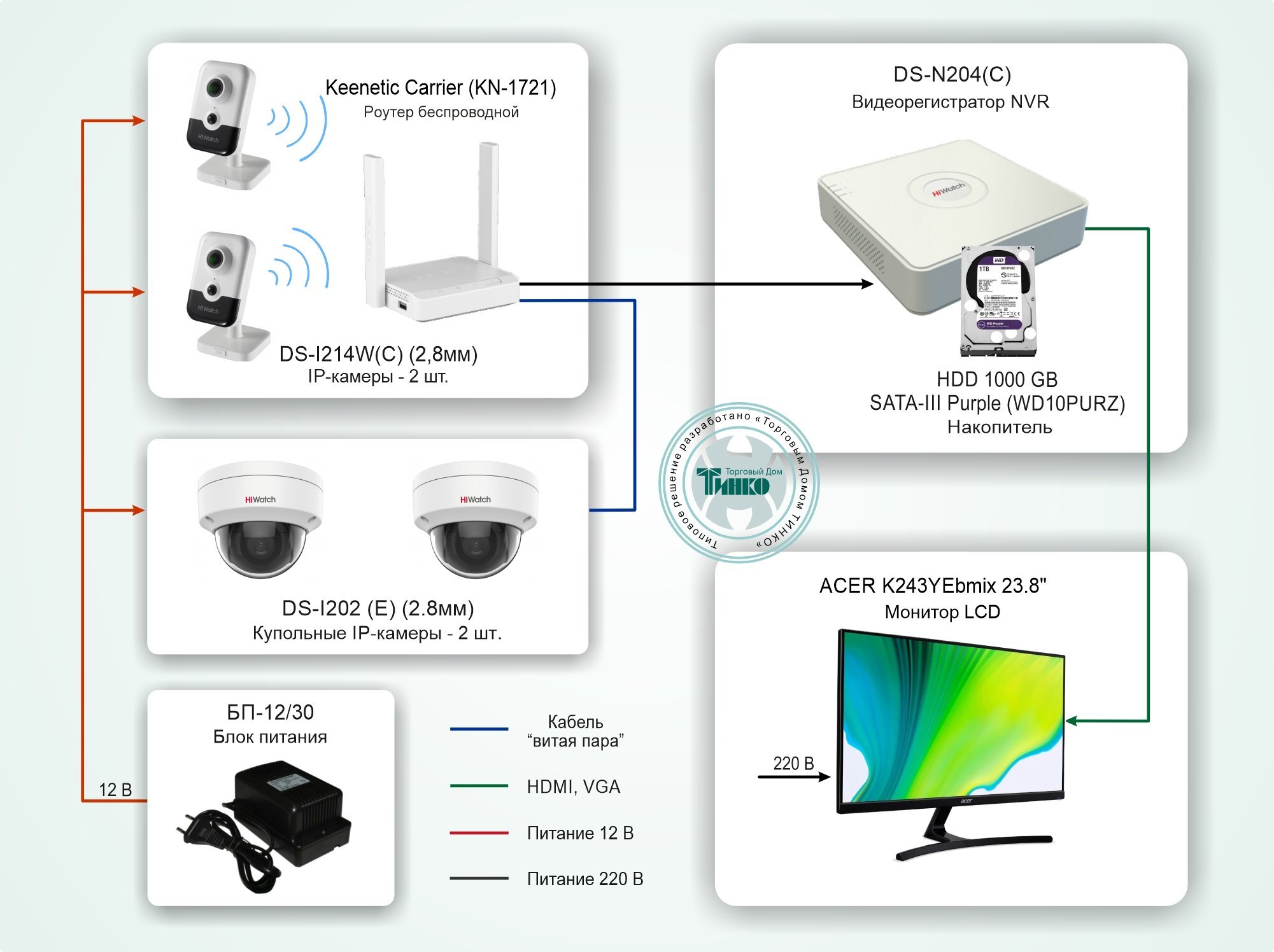 Система видеонаблюдения на базе IP-видеокамер HiWatch с применением технологии Wi-Fi HiWatch Типовое решение: ТСН-008