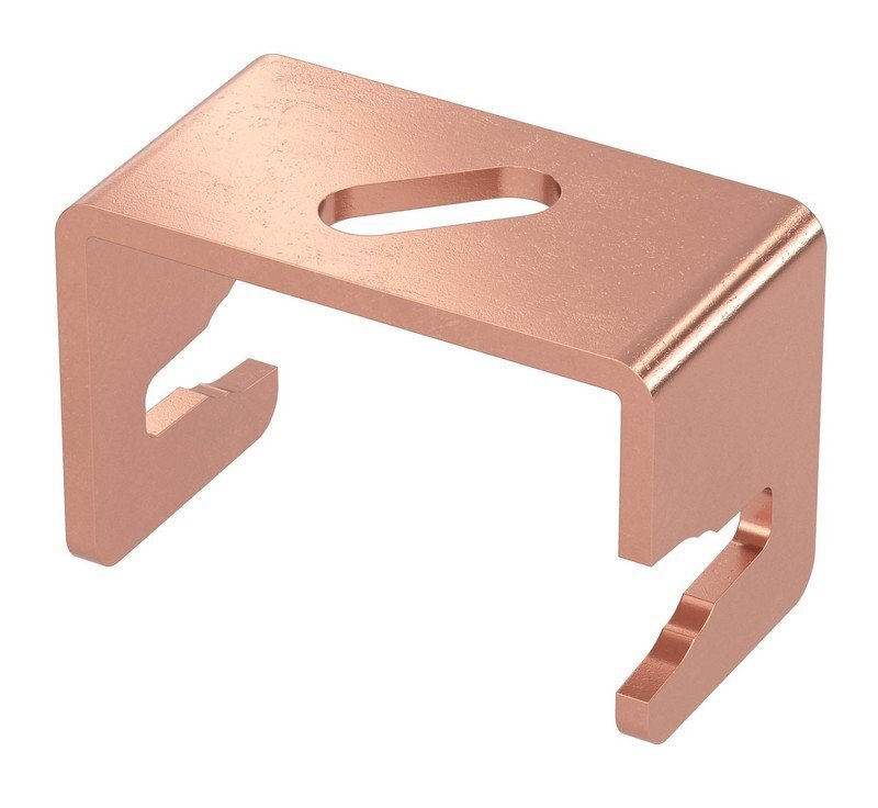 Скоба-держатель полосы используется для крепления полосы шириной 25 мм к фасаду и внутренним стенам. Максимальная толщина фиксируемой полосы - 6 мм. Материал - медь.