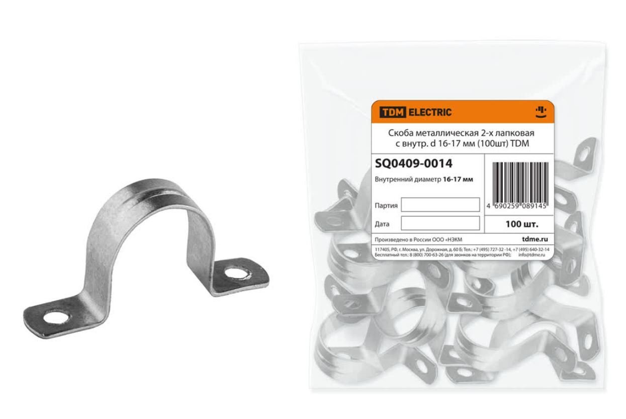 Артикул: Скоба металлическая 2-х лапковая D16-17мм (100 шт) TDM (SQ0409-0014)