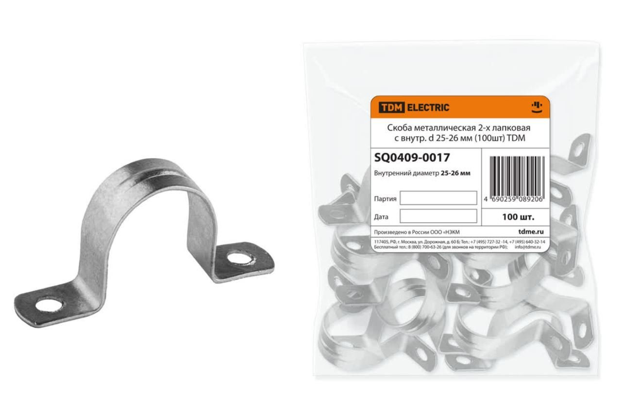 Артикул: Скоба металлическая 2-х лапковая D25-26мм (100 шт) TDM (SQ0409-0017)