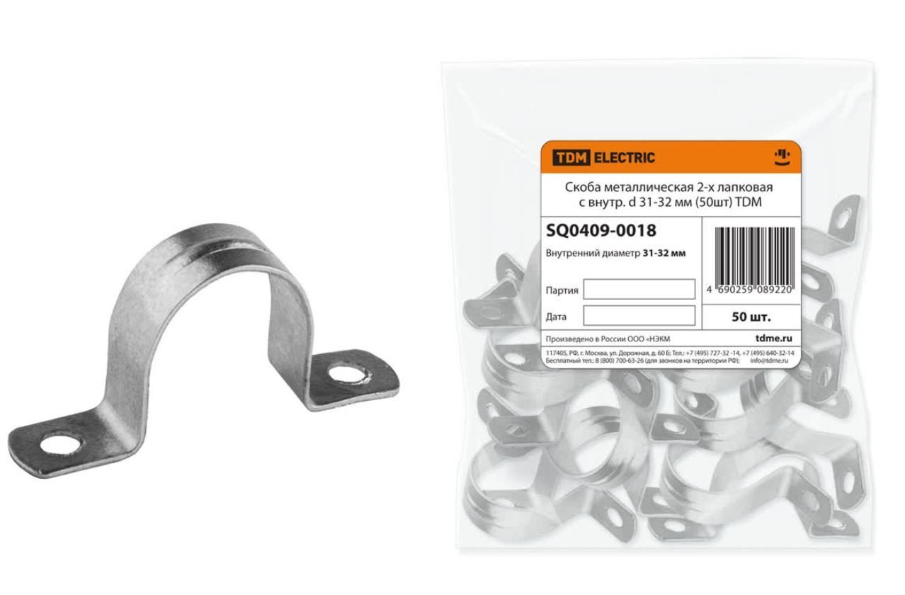 Артикул: Скоба металлическая 2-х лапковая D31-32мм (50 шт) TDM (SQ0409-0018)