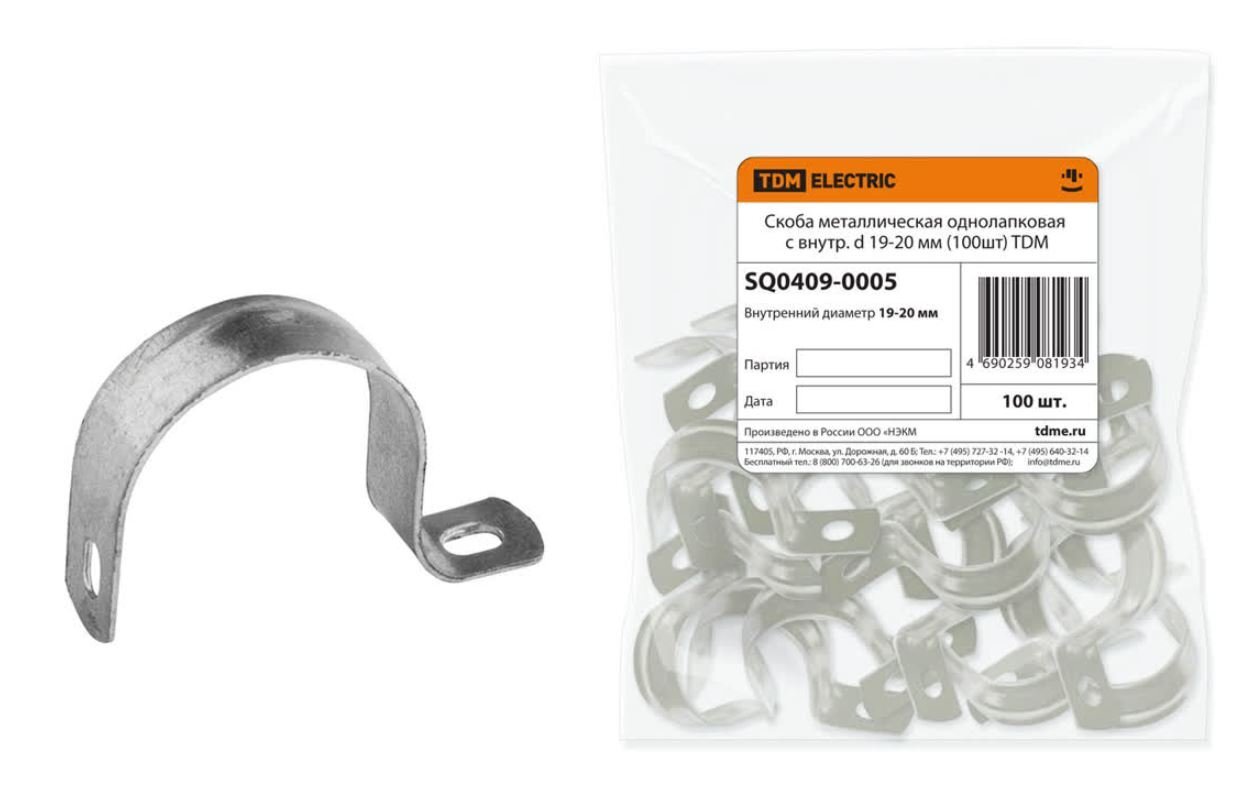 Скоба металлическая однолапковая TDM ЕLECTRIC Скоба металлическая однолапковая D19-20мм (100 шт) TDM (SQ0409-0005)
