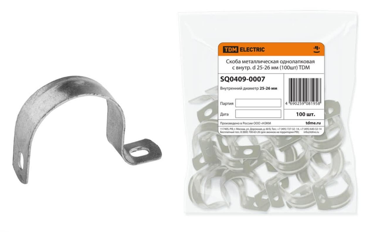 Скоба металлическая однолапковая TDM ЕLECTRIC Скоба металлическая однолапковая D25-26мм (100 шт) TDM (SQ0409-0007)