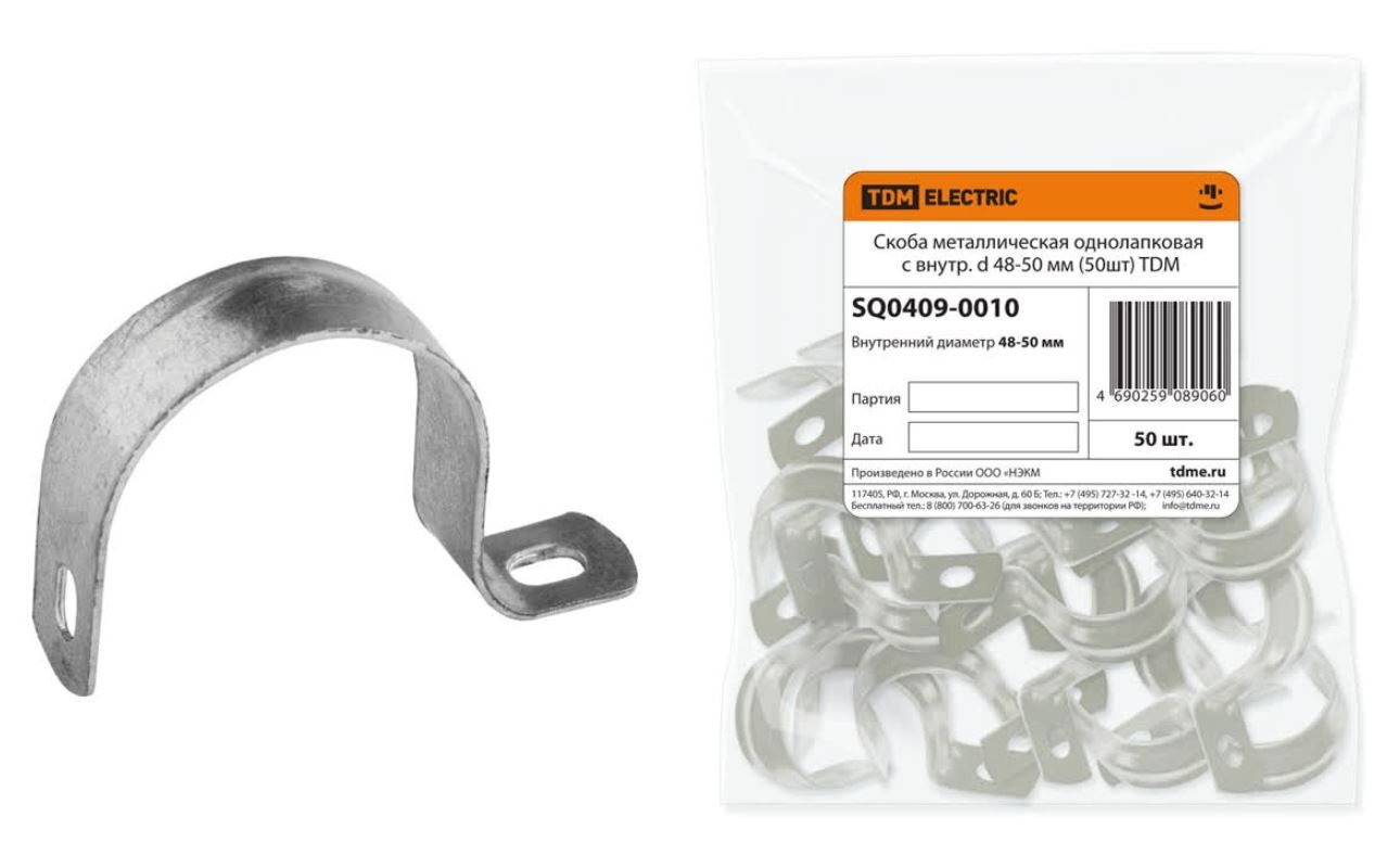 Артикул: Скоба металлическая однолапковая D48-50мм (50 шт) TDM (SQ0409-0010)