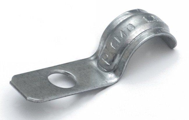 Скоба металлическая однолапковая усиленная противопожарная СМОУ D12…13 мм толщиной 0.9 мм, отверстие D 6,5 мм под анкер-клин (100 шт)