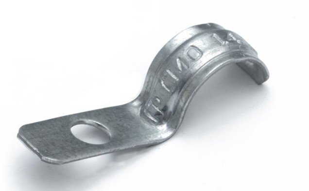 Скоба металлическая однолапковая усиленная противопожарная СМОУ D14…15 мм толщиной 0.9 мм, отверстие D 6,5 мм под анкер-клин (100 шт)