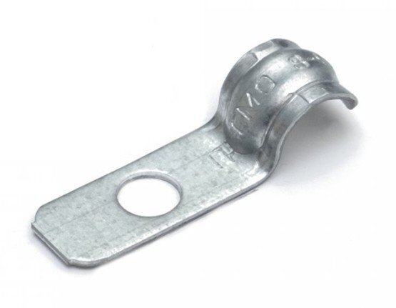 Скоба металлическая однолапковая усиленная противопожарная СМОУ D8…9 мм толщиной 0.9 мм, отверстие D 6,5 мм под анкер-клин (100 шт)