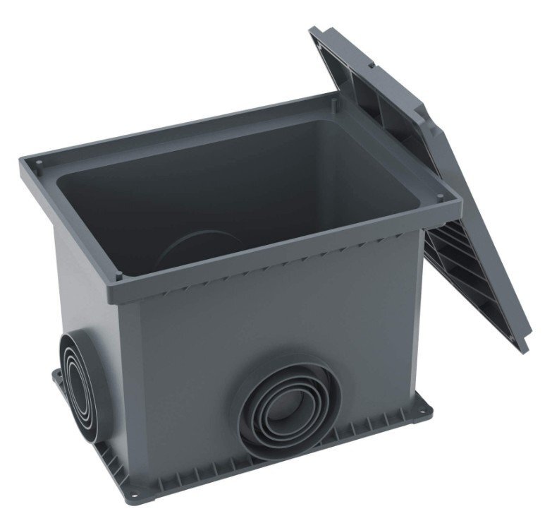 - с четырех сторон специальные выбивные вводы для двустенных труб O 50 мм, O 63 мм, O 110 мм.