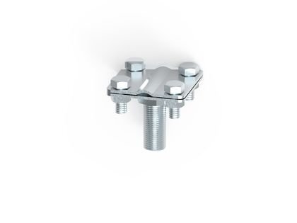 Соединитель применяется для подключения круглого (8-10мм) либо плоского (25мм) проводника к молниеприемному стержню. Соединитель устанавливается в бетонное основание путем ввинчивания.