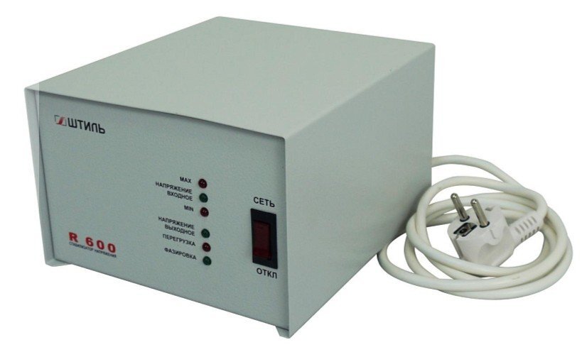 Тип стабилизатора релейный | Допустимая мощность нагрузки, кВА 0.6 |