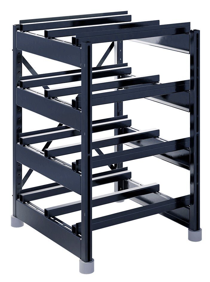 Сборно-разборная система позволяет подстраивать положение поперечных балок, исходя из размеров аккумулятора, а также перемещать ярусы в допустимых диапазонах.