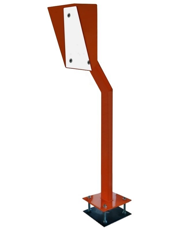 Наклонная стойка (150 град.) для установки считывающих устройств СКУД, высота 1270 мм, труба 30х60 мм, защитный кожух 300х400 мм с диэлектрической пластиной, основание 180х180 мм, электрический клеммник, закладная пластина для бетонирования + комплект оцинкованного крепежа, цвет оранжевый по шкале RAL 2008.