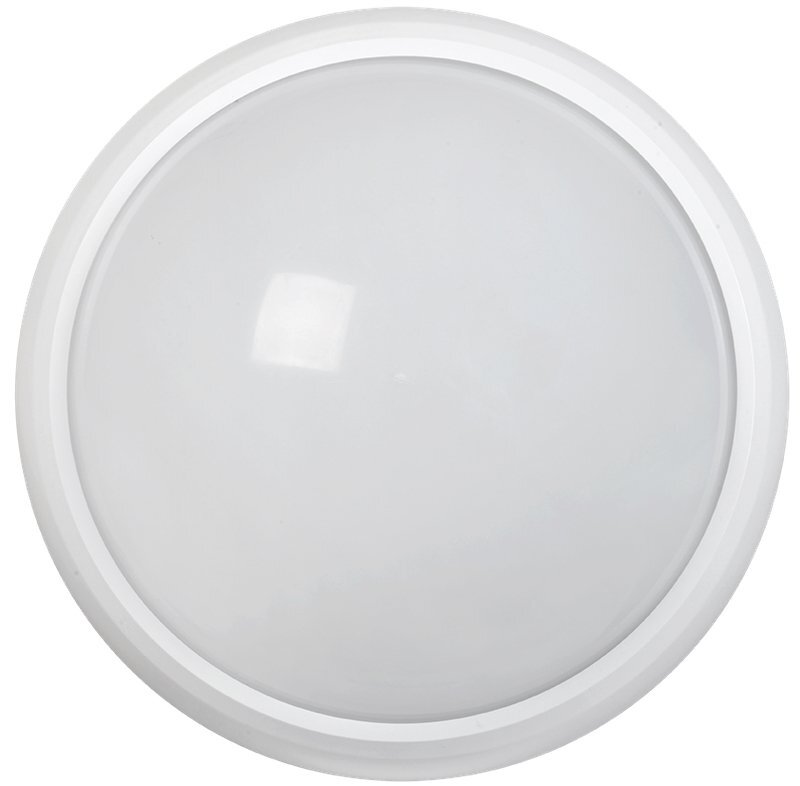 Светильник LED круглый, с микроволновым датчиком движения, мощность 12 Вт; световой поток 960 лм; цветовая температура 6500 K; U-вх. 200...240 В; IP65; t-раб.-40...+45°C; габ.размеры D178х80 мм, цвет белый