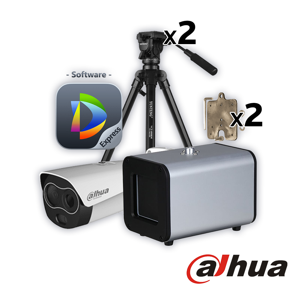 Тепловизионный комплекс Dahua № 1 включает в себя тепловизионную камеру, калибратор, программное обеспечение, два штатива и два адаптера под штатив.