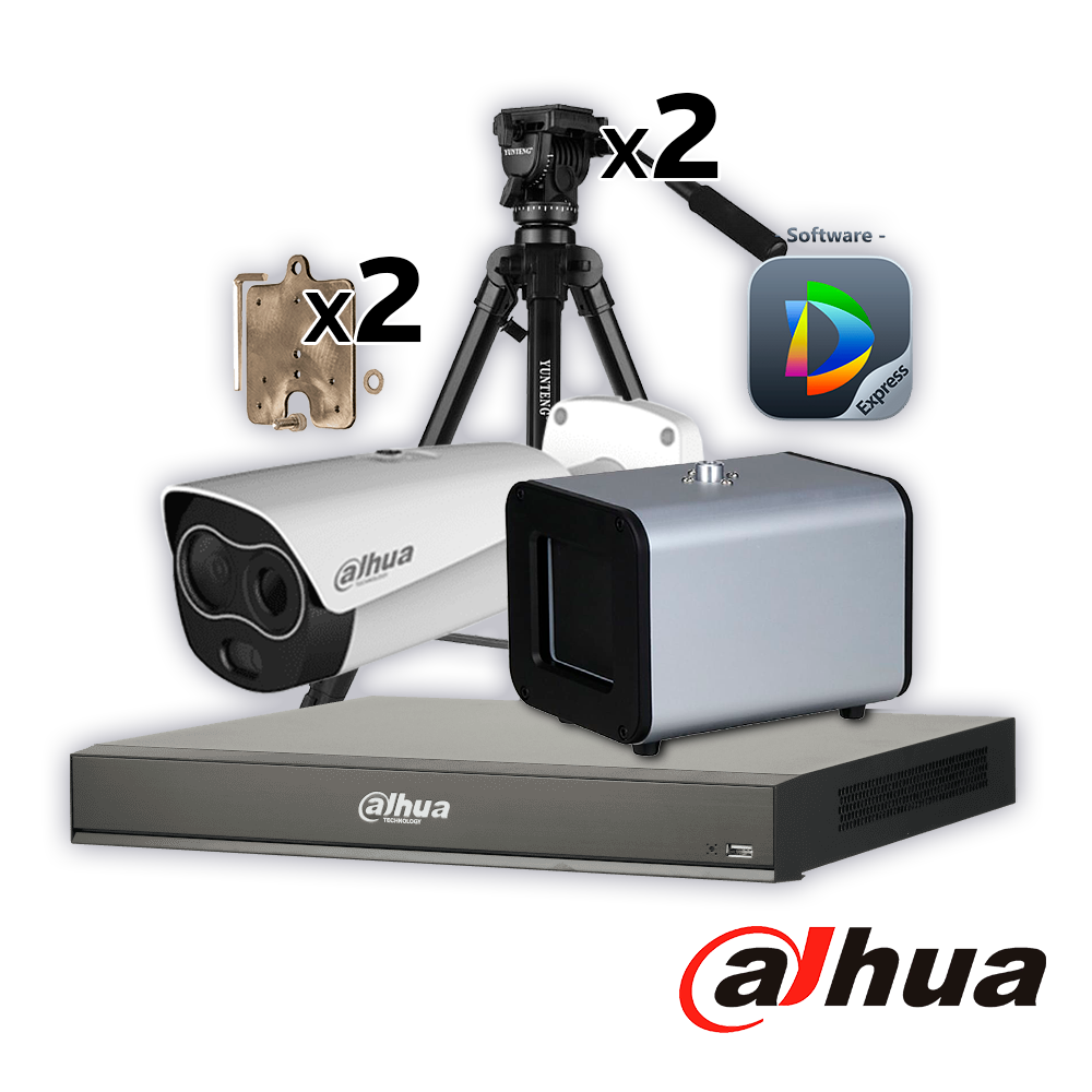 Тепловизионный комплекс Dahua № 3 включает в себя тепловизионную камеру, калибратор, регистратор, ПО, два штатива и два адаптера под штатив.