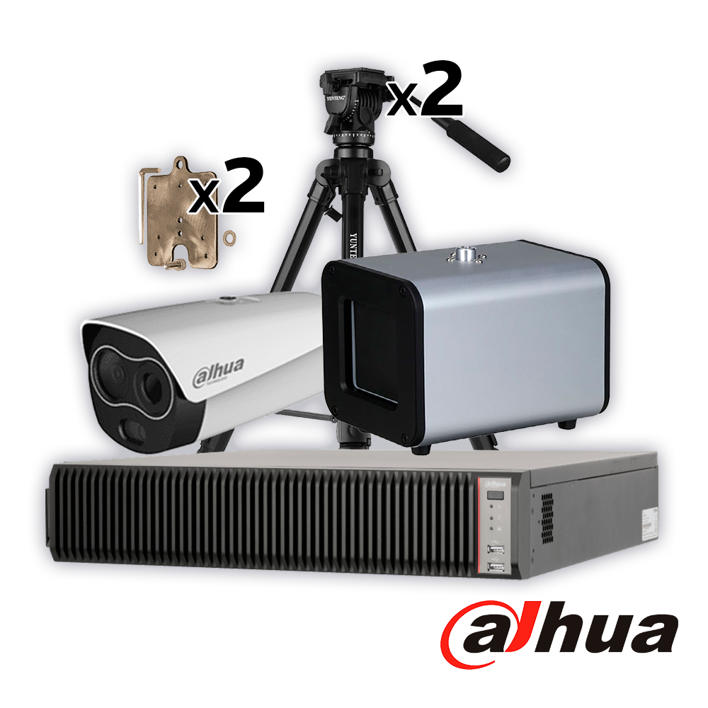 Тепловизионный комплекс Dahua № 4 включает в себя тепловизионную камеру, калибратор, регистратор, два штатива и два адаптера под штатив.