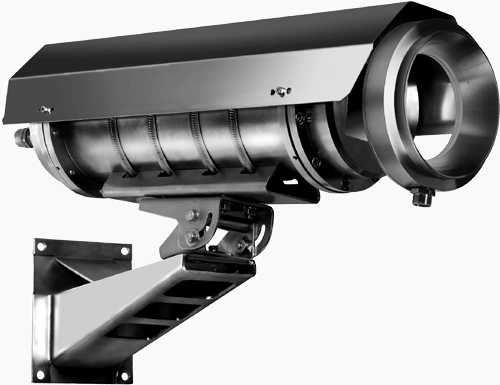 Термокожух взрывозащищенный 1ExdIICT6X с блендой. Внутр. размер O105Х240 мм, термореле, непосредственный обогрев стекла и видеокамеры, безаварийное включение камеры при отриц. темпер.; устройство защиты от грозовых разрядов и высоковольтных помех. АС 220 В (кожух), 55Вт, 0,25A; DC 9/12 В/АС 24 В (камера); - 60...+ 50°С, IP 66, кронштейн.