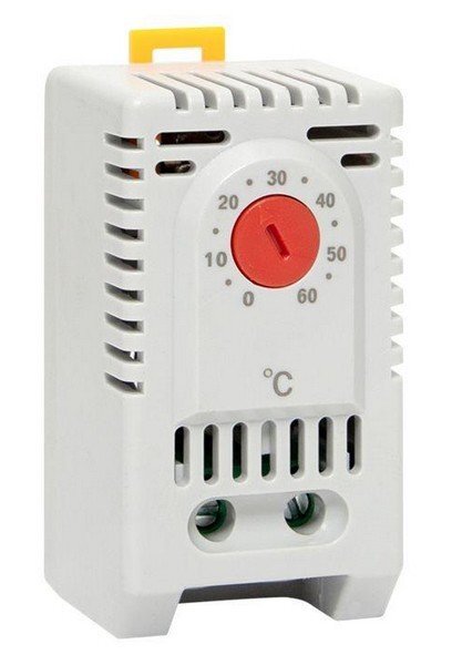 Специальный терморегулятор предназначен для поддержания нужной температуры внутри шкафа. Терморегулятор с НЗ контактом используется для отключения нагревателя при повышении температуры сверх установленного значения. Терморегулятор с НО контактом используется для включения вентилятора при повышении температуры сверх установленного значения.