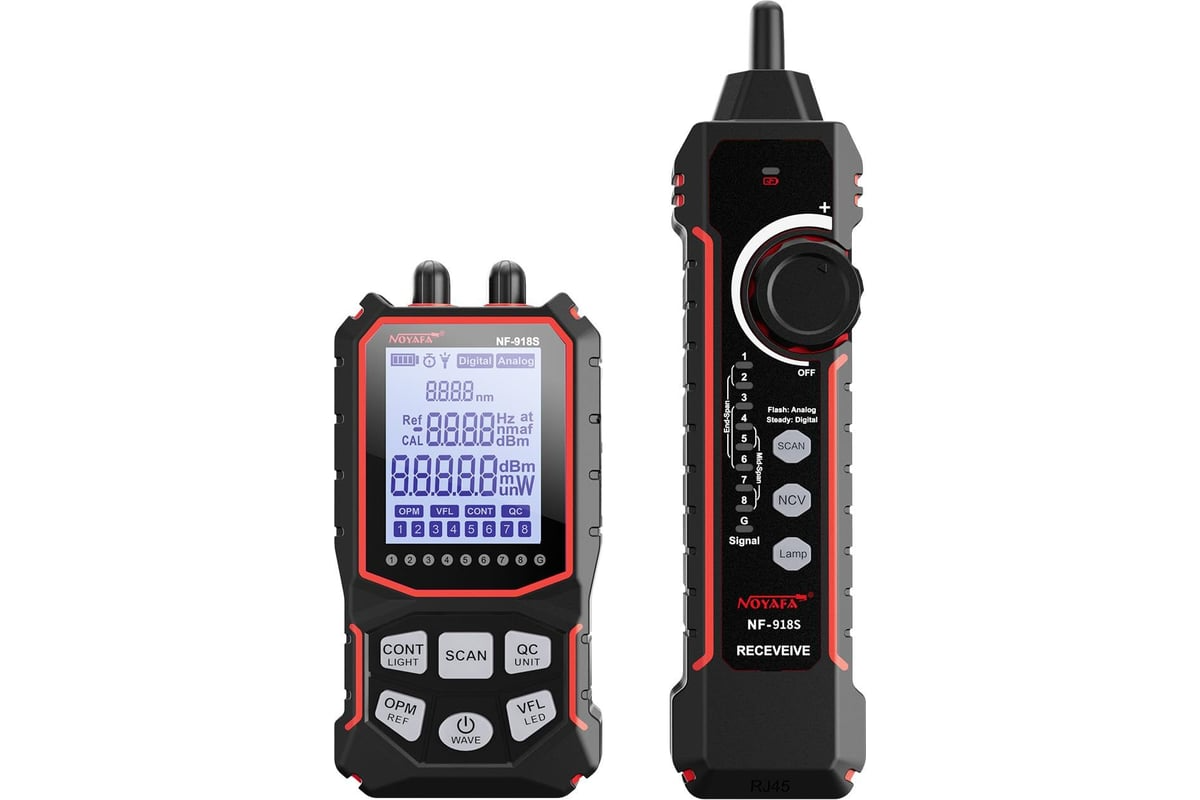 Многофункциональный PoE тестер-трассоискатель с функцией цифрового и аналогового сканирования кабеля. В тестере используются три режима отслеживания кабеля - цифровой режим, аналоговый режим и режим питания по Ethernet, он включает в себя функции проверки состояния кабеля 5/5e и 6 категорий (CONT), тестирования питания по Ethernet (PoE), бесконтактной индикации напряжения переменного тока (NCV), проверки качества обжима коннекторов (QC), измерения мощности (OPM) и визуализатора мест повреждений оптоволокна (VFL) длина волн (nm): 850/1300/1310/1490/1550/1625, 3.7 В 1500 мАч литий-полимерная батарея, 133х69х32 мм.