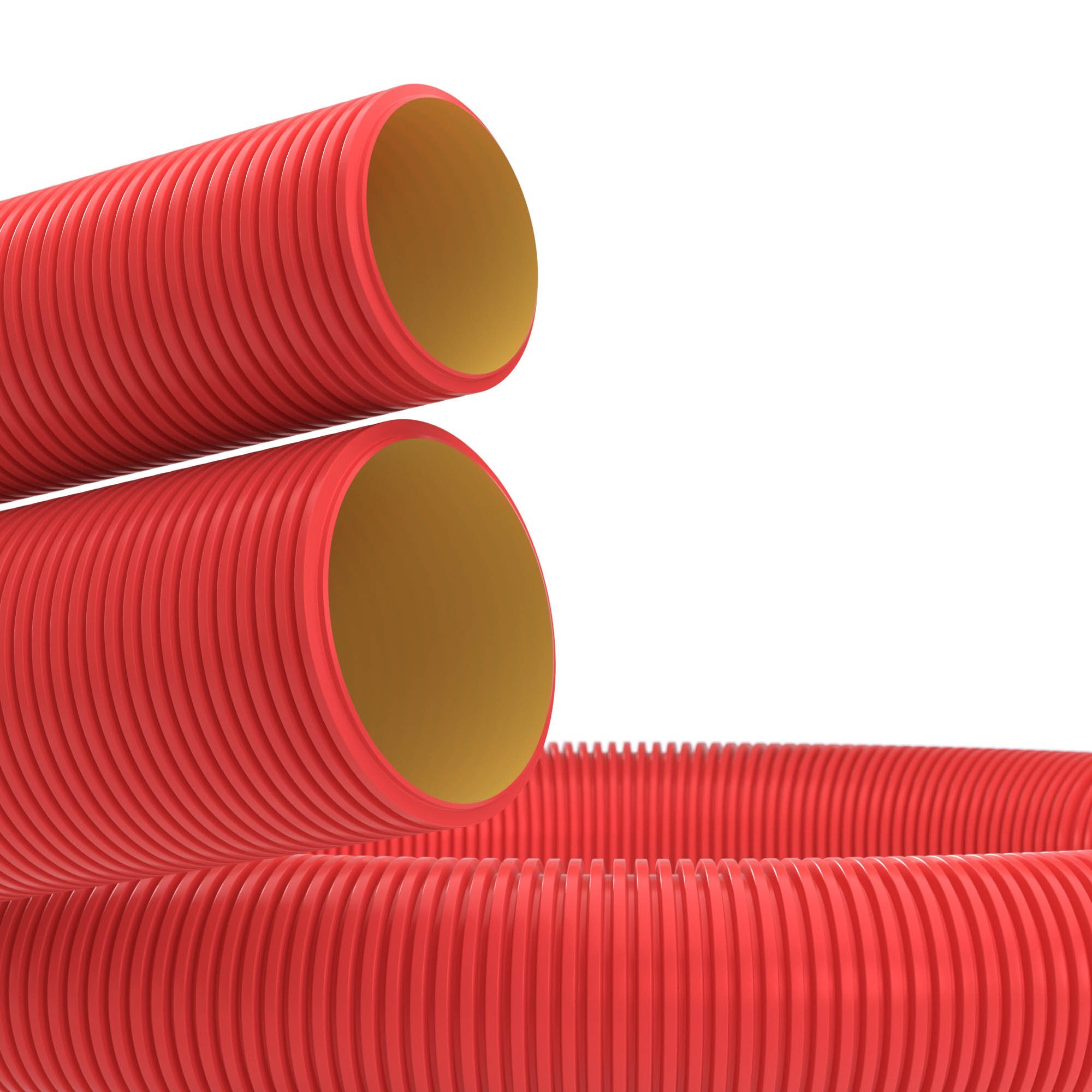 Труба гибкая двустенная для кабельной канализации, допускаются только скрытые виды монтажа (в грунте или при монолитном бетоностроении), O-наруж. 40 мм, O-внутр. 31,5 мм, кольцевая жёсткость 28 кПа, сопротивление сжатию 750 Н., t-монт. -25...+90 °С, t-раб. -55...+90 °С, t-монт. -25...+90 °С, t-раб. -55...+90 °С, с протяжкой, в комплекте 1 соединительная муфта, бухта 150 м, цвет красный