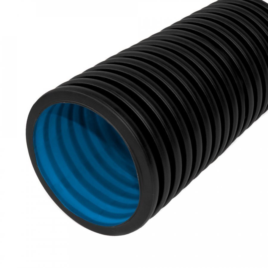 Труба гофрированная двустенная ПНД жесткая тип 450 (SN12) стойкая к ультрафиолету не распространяющая горение черная d110 мм 6м (36 м)
