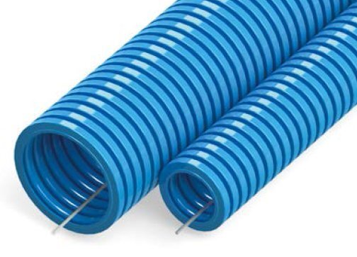 Труба гофрированная из полипропилена (ПП) не распространяющая горение, с зондом, внешний диаметр 16 мм, внутренний диаметр 10.7 мм, сопротивление сжатию 750 Н, IP66, t-раб.-45…+115°С, синего цвета