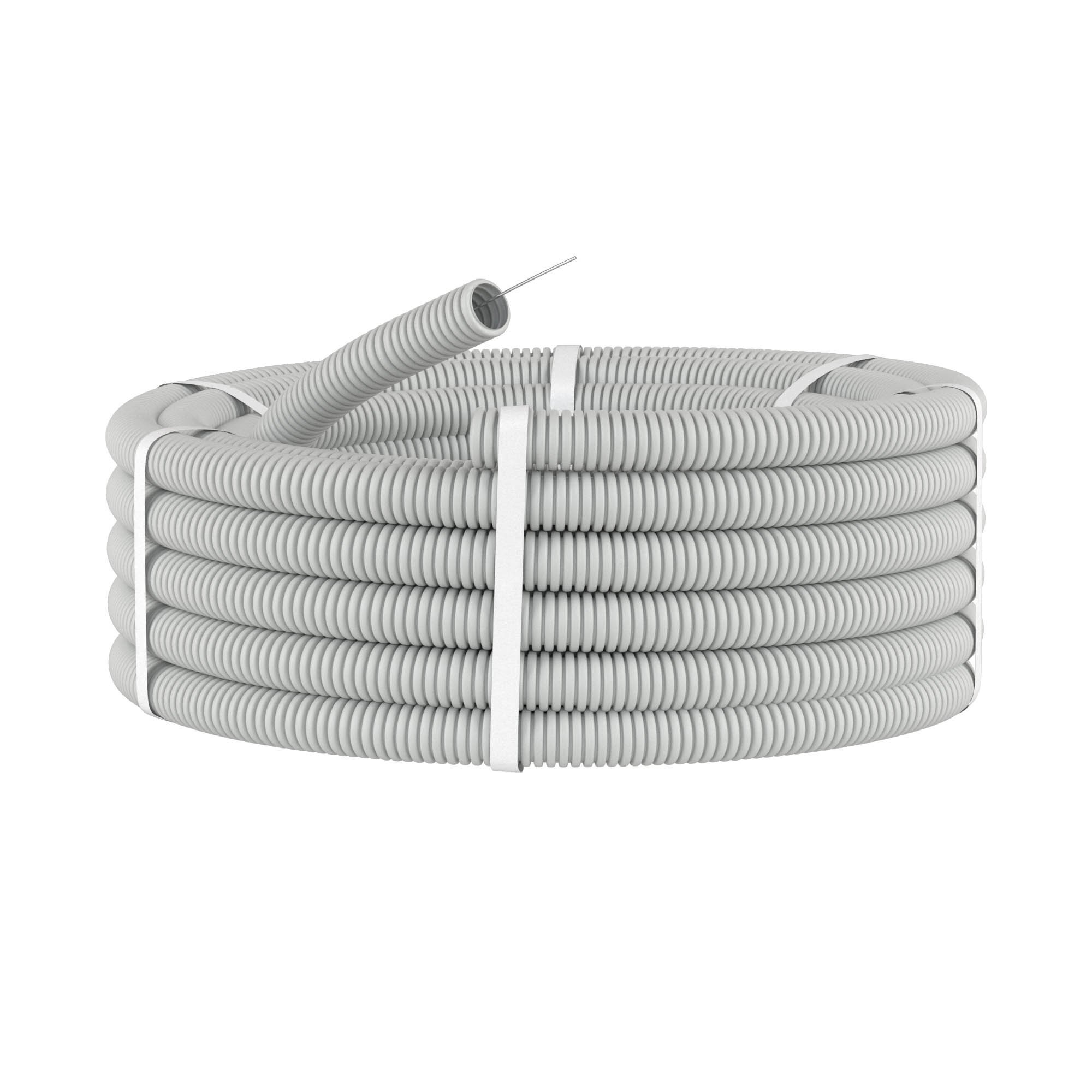 Труба гофрированная с протяжкой, не распространяющая горение ДКС Труба ПВХ легкая серая D50 (91950)
