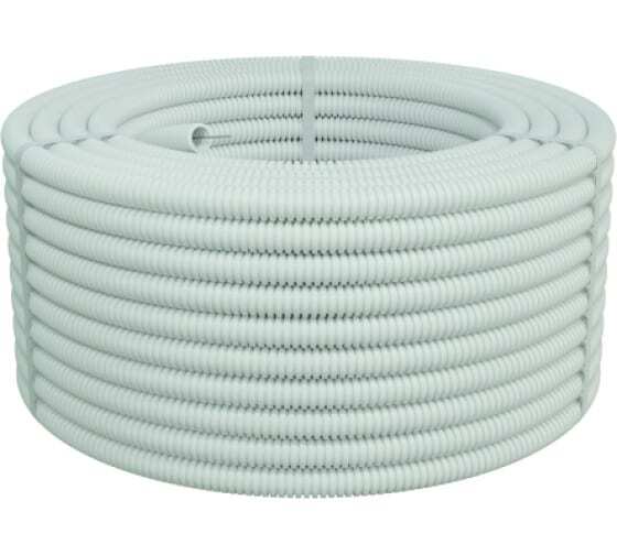 Труба гофрированная, с зондом, не распространяющая горение, без галогена Экопласт Труба ПЛЛ HFFR легкая D50, белая (20150HFR-W)
