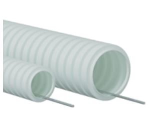 Труба гофрированная, с зондом, не распространяющая горение, без галогена Экопласт Труба ПЛЛ ПП-FR легкая D50, белая (60150HFR-W)